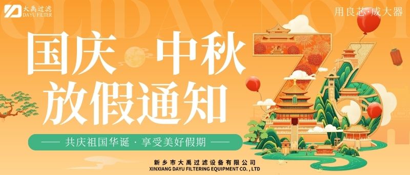 尊敬的客戶及合作伙伴:秋風(fēng)送爽,丹桂飄香。值此國慶與中秋雙節(jié)來臨之際,謹(jǐn)向您及家人致以zui誠摯的節(jié)日祝福!根據(jù)國家法定節(jié)假日安排,結(jié)合公司實(shí)際情況,現(xiàn)將2025年國慶+中秋雙節(jié)放假安排及相關(guān)事項(xiàng)通知如下:一、放假時(shí)間2025年10月1日(星期三)至10月6日(星期一),共計(jì)6天。10月7日(星期二)起正常上班。9月28日(周日)、10月12日(周日)補(bǔ)班。二、業(yè)務(wù)服務(wù)說明放假期間,公司線上咨詢通道保持暢通。銷售人員將不定期查看并回復(fù)您的咨詢,但受假期影響,可能存在回復(fù)延遲的情況,敬請(qǐng)諒解。如遇緊急事項(xiàng),您可撥打以下熱線:王經(jīng)理13613905650;李經(jīng)理13839073363,我們將竭誠為您服務(wù)。三、生產(chǎn)安排提醒因車間節(jié)前生產(chǎn)訂單已排滿,為確保假期前后生產(chǎn)質(zhì)量與效率,放假期間(10月1日至10月6日)將暫停安排新生產(chǎn)訂單生產(chǎn)。節(jié)前已下單的訂單將按原計(jì)劃正常推進(jìn),放假期間新接訂單將統(tǒng)一順延至10月7日復(fù)工后,按序安排生產(chǎn)。由此帶來的不便,我們深表歉意,感謝您的理解與支持。四、溫馨提示假期出行請(qǐng)注意安全,做好個(gè)人防護(hù)。公司官網(wǎng)及社交媒體平臺(tái)將持續(xù)更新節(jié)日動(dòng)態(tài)及服務(wù)資訊,歡迎隨時(shí)關(guān)注。佳節(jié)共團(tuán)圓,服務(wù)不間斷。值此雙節(jié)同慶的美好時(shí)刻,衷心感謝您長期以來對(duì)我司的信任與支持!我們期待在節(jié)后以更飽滿的熱情、更優(yōu).質(zhì)的服務(wù)與您攜手同行,共啟新程!此致敬禮!新鄉(xiāng)市大禹過濾設(shè)備有限公司2025年9月28日